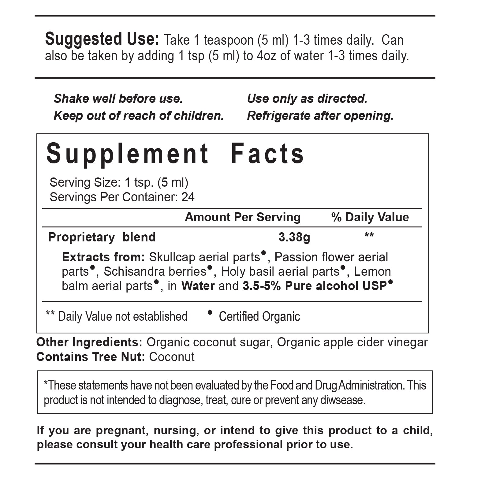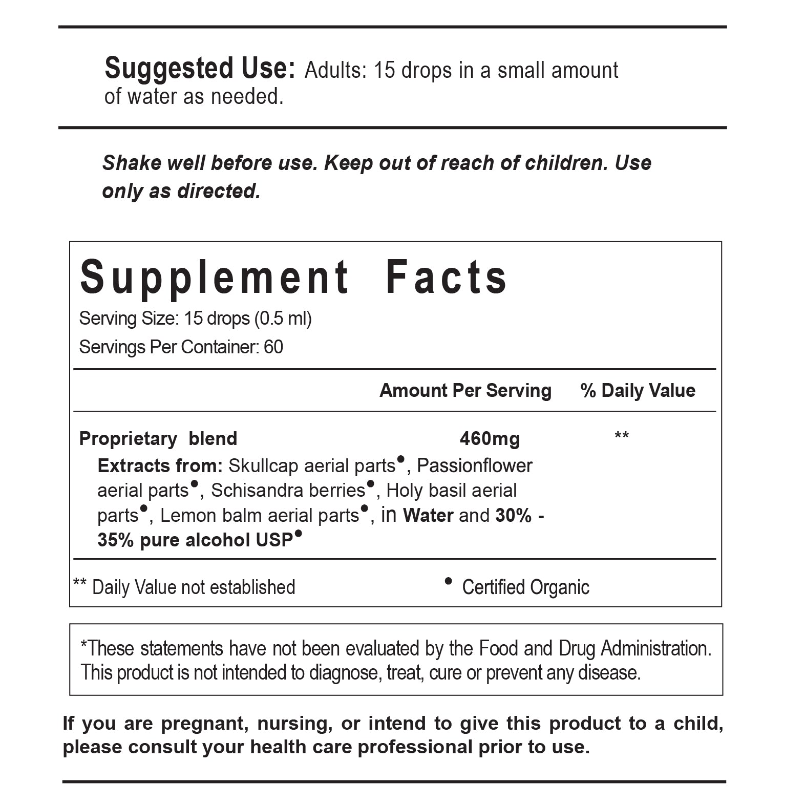 If you are pregnant, nursing, or intend to give this product to a child, please consult you health care professional prior to use.